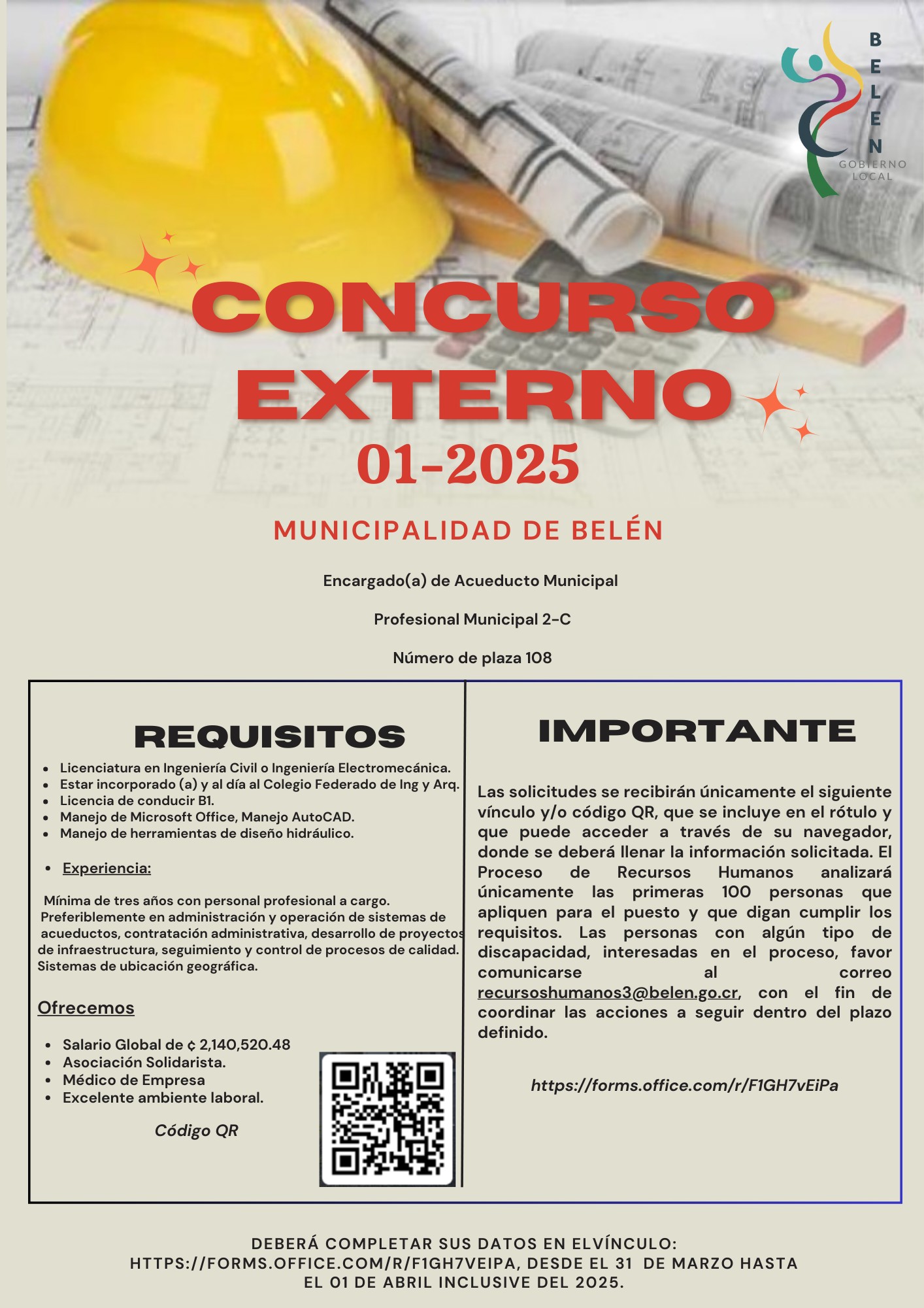 - Concurso Externo 01-2025 Coordinador (a) del Acueducto Municipal